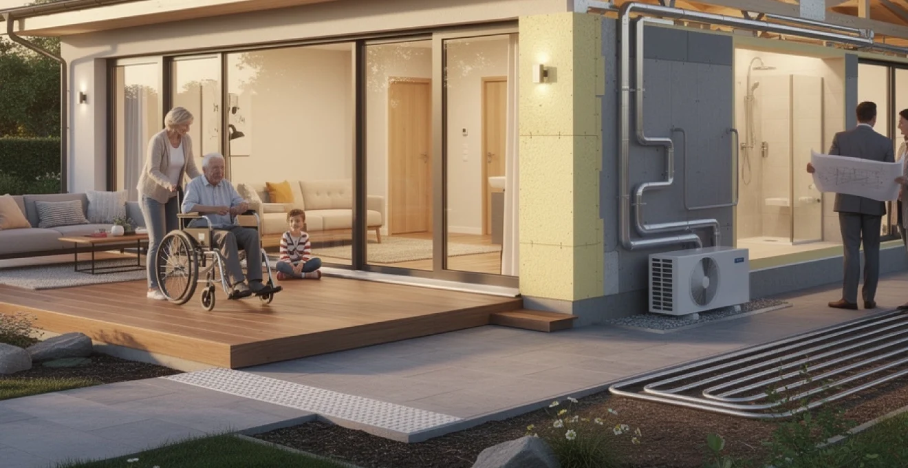 Au-delà de la performance thermique, la maison de plain-pied s’inscrit pleinement dans la logique d’accessibilité universelle. L’absence d’étage constitue un atout majeur pour respecter les préconisations PMR (Personnes à Mobilité Réduite) et anticiper le vieillissement des occupants. Même lorsque la réglementation ne l’impose pas, de plus en plus de maîtres d’ouvrage optent pour une approche “logement évolutif”, intégrant dès la conception les aménagements qui permettront de rester chez soi le plus longtemps possible.